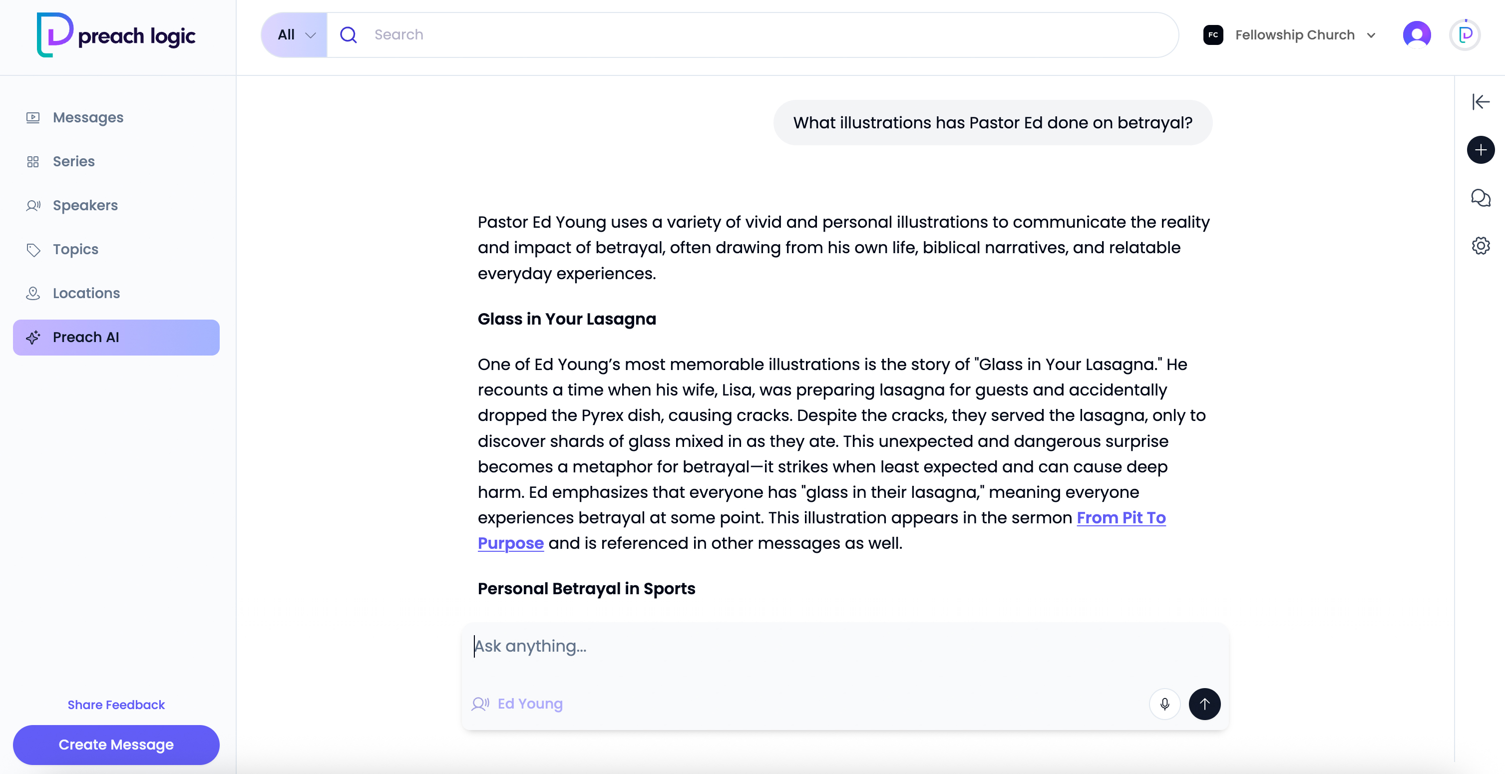 Ask it questions. Find connections. Build new messages faster. Preach Logic helps you rediscover insights, stories, and Scriptures you’ve already shared—making sermon prep feel effortless.
