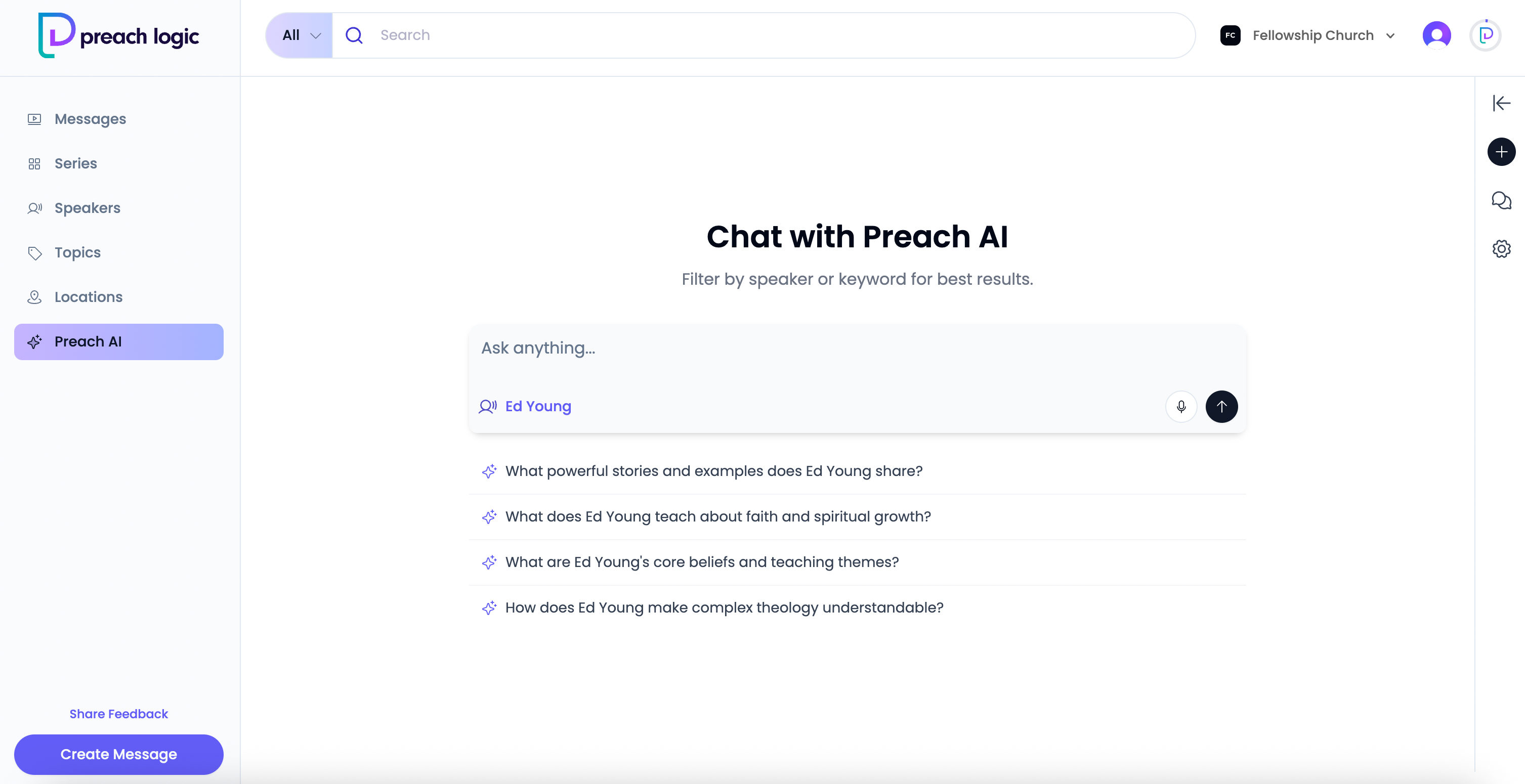 Already have messages on YouTube? Simply upload them, and Preach Logic will extract transcripts, categorize topics, and organize your library automatically.